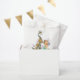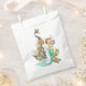 Bolsas de baby shower de sirena con adorable sirenita y conchas doradas y caballito de mar en un fondo brillante. Puedes agregar texto a esta adorable bolsa de regalo de baby shower de sirena.