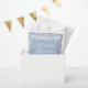 The ornamental lace-style frame and banner create a refined, traditional look that pairs perfectly with blue-and-white décor. Ideal for filling with sweets, cookies, small gifts, or thank-you treats for your guests.