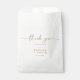 Estas bolsas de favores son perfectas para un boda moderno. Personalizar las bolsas de regalo con un breve mensaje de gratitud, incluyendo sus nombres y la fecha. Utilice estas bolsas para complementar la recepción de una boda, la ducha de novia, cualquier evento o fiesta. El diseño, sencillo y elegante, presenta una tipografía de escritura clásica y elegante en oro.