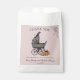 Bolsa de favor de Baby Shower de Halloween/Otoño personalizada con "Gracias", que incluye un cochecito de bebé dibujado a mano, cuervo y calabazas contra un fondo rosa claro. Simplemente haga clic en "Personalizar esta plantilla" para insertar su propio mensaje de agradecimiento, nombre y fecha del evento.