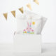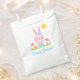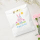 Bolsas personalizadas de Pascua con un conejo rosa de Pascua rodeado de un huevo de Pascua y tulipanes. Agradable para la celebración de la cena de Pascua. Diseñado para ti por Blackberry Boulevard.
