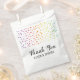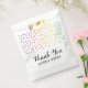 Esta bolsa de favores de boda gay para lesbianas es una manera divertida y colorida de expresar gratitud a los invitados por compartir en la alegre celebración del amor. Los colores vivos del arcoiris están representados en el diseño de los confeti sobre un fondo blanco y nítido, que refleja la encarnación de la diversidad y la inclusión. Los nombres de la pareja y la frase "Gracias" se muestran de forma destacada, añadiendo un toque personal a la bolsa. Con su aspecto animado y festivo, esta bolsa de favores hará sonreír a todos los que la reciben.