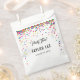 ¡Festividades de cumpleaños arcoiris con bolsos de favor! Con divertidos círculos de confeti de color arcoiris se esparce por todas partes con tu hijo de cumpleaños o información de chicas en el centro. "Tiempo de Fiesta" en letra de guión divertida con la información de su hijo abajo.