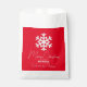 Esta bolsa de favor de vacaciones personalizable combina hermosamente elementos clásicos y modernos. El diseño presenta un gráfico llamativo de copo de nieve blanco sobre un fondo rojo vibrante. Debajo del copo de nieve, "Merry Christmas" se muestra elegantemente en una escritura fluida, seguido de "HAPPY NEW YEAR" en una fuente serif crujiente. La línea final está totalmente personalizada para incluir el nombre de su familia, lo que la convierte en la bolsa de regalo perfecta para cualquiera que busque favores de fiesta de Navidad rojos modernos y embalaje de copo de nieve personalizado para Nochevieja.