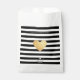 Este diseño presenta rayas blancas y negras clásicas con un corazón dorado falso en el centro. Personaliza con un nombre y tu ciudad (opcional).