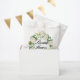 Agrega un acento floral a tus regalos con estas bolsas de favores personalizables. Cuenta con una corona floral en acuarela de hydrangeas blancas y follaje. Estas bolsas de favores florales son perfectas para showers de primavera y jardín. Personaliza agregando tus propios textos.