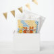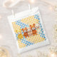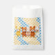 Cute baby shower favor bags with crocheted stuffed animal teddy bears in blue, brown and yellow. Thank your guests with a favor bag full of goodies!