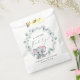 Una linda ducha de bebé con bolsos de bienvenida con "A Sweet Little Gracias" en una mezcla de tipografía moderna y un guión elegante con un batiburrillo cardíaco, y una acuarela de un elefante bebe rosa en una guirnalda de vegetación de eucalipto verde salado. Personalice el nombre de la futura madre y la fecha de la ducha.