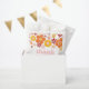Cajas de favores inspiradas en la moda de los años 70 con flores estilo y fuentes boho y colores.