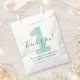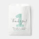Un 'gracias' encantador para los invitados a la fiesta del primer cumpleaños. Suavemente desgastado para un aspecto rústico ligero. Hermoso tono verde menta pastel / azul marino con lunares pequeños en general.