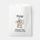 Esta bolsa de favores contiene un lindo cachorro sosteniendo un hueso en su boca sobre las Gracias. Todo el texto se puede personalizar para que se ajuste a su evento.