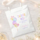 Cute colorido globo acuático niños cumpleaños gracias a la bolsa de favores con el globo de forma de corazón y estrella y el vibrante texto colorido "Gracias".