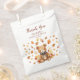 Añade un toque reconfortante a tus favores de bebé con estos adorables bolsos de agradecimiento de osito de peluche de otoño. Cuentan con un oso de peluche color agua dulce enclavado en hojas de otoño vibrantes en tonos marrones, naranjas y amarillos. El diseño refleja perfectamente la esencia de una acogedora ducha de bebé de temática boscosa.