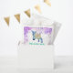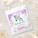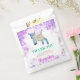 Colorida acuarela lindo saltar cabra bebé gracias a los bolsos de favores con fondo salpicado de color rosa y púrpura, ideal para un fiesta de cumpleaños infantil, sobre todo celebraciones con temática de granja. Las palabras ‘Gracias por celebrar mi cumpleaños conmigo’ con el nombre de un niño personalizado. Tipografía moderna y divertida de color que es fácil de personalizar usando la plantilla. Pintura original de la artista Catherine Sweetman