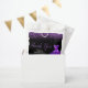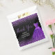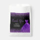 A beautiful dark purple themed elegant watercolor dress gown on a black background with faux glitter at the top and bottom of the favor bag.