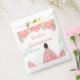 This Quinceanera favor bag features faux glitter pink floral flowers and a beautiful princess with dark skin and an elegant dress. This is perfect for a Quinceanera birthday party.
