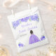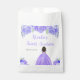 This sweet sixteen favor bag features faux glitter purple floral flowers and a beautiful princess with dark skin and an elegant dress. This is perfect for a sweet sixteen birthday party.