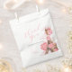Bolsas de favor para despedida de soltera en París con caligrafía y diseño floral rosa de la Torre Eiffel.