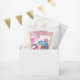 ¡Los dinosaurios también son para los chicas! Celebra su tercer cumpleaños con este lindo bebé dino usando una corona rosa y llevando un regalo. Nombre a personalizar. Colores de este diseño bonito: rosa y azul.
