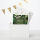El original ilustracion personalizado de Destei de diferentes tipos de adorables dinosaurios junto con un follaje verde de plantas de selva. Los dinosaurios incluidos son Tyrannosaurus / T-rex, Triceratops, Pteranodon y Brachiosaurus. El color de fondo es verde. También hay tres áreas de texto personalizables.