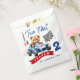 ¡Celebra tu segundo cumpleaños con estilo con esta adorable bolsa de cumpleaños con tema de carrera! El diseño muestra un encantador oso de peluche cruzando en un coche de carreras adornado con el número 2, haciendo zoom a lo largo de las pistas de carreras. Con la tipografía de moda que explica "crecer demasiado rápido", junto con todos los detalles esenciales del fiesta, esta bolsa de favores marca el tono perfecto para una celebración llena de diversión.