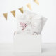 Delicados arreglos folclóricos con pequeños acentos florales en tonos suaves y oníricos de crema, taupe y rosa con salpicaduras de purpurina burdeos y diseños únicos hacen de este una interesante colección, especialmente para bodas de otoño. La bolsa de favoritas de la boda que se muestra aquí presenta un frondoso follaje alrededor de un marco burdeos en forma de diamante. Agregue su mensaje personal, nombres y fecha de boda utilizando la plantilla proporcionada. Vea el vínculo de colección en esta página para ver todos los elementos coincidentes de este hermoso diseño o busque ID817 para ver otras piezas y opciones de color para este conjunto.