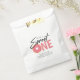 Ella es una dulce, con tema de rosquilla, primera fiesta de cumpleaños, bolsa de favores. Donut rosa puro con rociadores dorados, diseño moderno de tipografía rosa y negra.