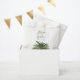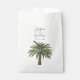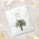 Un conjunto único de bolsos de papel con la temática de la palmera, diseñados específicamente para tu futuro boda en la hermosa costa o isla. Disponen de un ilustracion mínimo de una palmera. Encima de esto, los nombres únicos de la novia y el novio con un elegante tipo de letra cursiva.