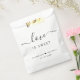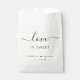 Bolsas de moda blancas para tus favores matrimoniales con "El amor es dulce" en una tipografía simple y un guión elegante con chispas, tus nombres unidos por un corazón y tu fecha boda.