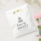Trate a sus invitados bodas con algunos dulces empacados en estas bolsas personalizadas. El diseño presenta un ilustracion de pasteles bodas de estilo vintage con "el amor es dulce" en escritura caligráfica y tipografía de bloques. Personalizar estas extravagantes pero elegantes bolsas de favores en blanco y negro con sus nombres y fecha boda.