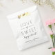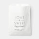 ¡El amor es dulce, disfruta un regalo! Estos modernos y sencillos bolsos de san serif en blanco y negro son perfectos para que sus invitados en un boda, una ducha de novia, una ducha de bebé o una celebración de cumpleaños se lleven a casa algunos dulces (caramelos, donuts, galletas, palomitas de maíz) después de la celebración. Personalice fácilmente con su nombre, evento y fecha.