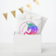 ¡Esta bonita silueta de unicornio en el arcoiris purpurina colorido le dará un toque de magia y brillo a la celebración de tu niñita! El adorable unicornio es a la vez llamativo y caprichoso y añade un elemento de cuento de hadas brillante y divertido a la fiesta de cumpleaños de un niño. El unicornio tiene muchos colores diferentes, con acentos purpurinas brillantes que le dan un aspecto mágico. Alrededor del unicornio hay un círculo de estrellas y textos rosas y morados que dice ¡Gracias! ¡Y es mi cumpleaños mágico! ¡Añade el nombre de su hijo para un toque personalizado! Esta bolsa de favores de unicornio purpurina arcoiris seguramente traerá alegría y felicidad al fiesta de su hijo. ¡Pida la tuya hoy y deja que empiece la magia!