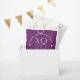 Bolsas de favoritas El día de San Valentín con "XOXO" en letras claras moradas y blancas con un color de fondo morado oscuro. Personalice los bolsos favoritos de XOXO con su saludo personalizado y su nombre. ¡Las bolsas moradas de El día de San Valentín son perfectas para el fiesta El día de San Valentín de su niño en clase!