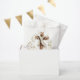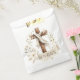 Esta bolsa de favores con la temática de Pascua tiene una cruz con las palabras "Él está en pie" en marrón.
