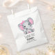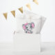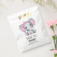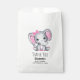 Favor de bolsas con un lindo ilustracion de acuarela de elefante rosa. Ella tiene unas orejas puntiagudas rosadas y blancas de polka y un arco de cinta rosada en la parte superior de su cabeza.