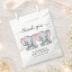 Trato de agradecimiento a tu fiesta de favor de bolsas para que tu bebé melliza se ducha con "gracias" en un suave guión gris con toques y una acuarela rosa de elefantes gemelos. Personalice el nombre y la fecha de ducha de la futura madre en una simple tipografía gris.
