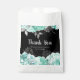 Pretty sweet sixteen favor bag with aqua green flowers and silver foliage. The words can be changed to suit your own details or requirements. Would be perfect for a sweet sixteen birthday party.