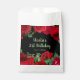 Pretty birthday favor bag with red roses flowers and green foliage. The words can be changed to suit your own details or requirements. Would be perfect for a birthday party.