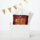 Celebrate a milestone fiftieth birthday in luxurious style with these elegant party favor bags. The glamorous design features a rich burgundy red background, sparkling gold confetti, festive ribbons, and a stunning 3D gold number 50 encrusted with ruby red gemstones. Perfect for wrapping candies, small treats, or special mementos for your guests. The text is fully editable, allowing you to easily change the name and create a memorable thank you gift for a glamorous women's 50th birthday celebration.