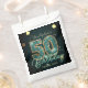 Send your guests home with a touch of luxury using these elegant teal and gold 50th birthday favor bags. Featuring a striking turquoise mosaic glass effect inside a 3D gold-trimmed "50," this design is set against a sophisticated dark background with glowing bokeh lights. The gold calligraphy and "Thank You" message add a polished finish to your milestone celebration. These paper treat bags are perfect for candies, small gifts, or popcorn at a sophisticated 50th birthday party for men or women. Easily customize the name to create a coordinated and memorable party favor.