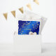 Si el tema de tu fiesta de cumpleaños número 50 está en azul real y oro, este diseño es una idea encantadora para los favores con un mensaje de agradecimiento. Sube tu foto usando la plantilla para tener una imagen en forma de corazón. También se puede cambiar un hito a 30, 40, 60, 70, 80 u otros años. Los corazones están en colores dorados amarillos (gradiente que imita el oro), el fondo azul imita la superficie metálica.