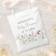 Elegante ducha de flores para bebés favorece las bolsas con un borde inferior de flores acuáticas y follaje en tonos rosa, amarillo, violeta, azul y verde sobre un fondo blanco. Personalice las bolsas de bienvenida con el nombre de la futura madre y la fecha. Las bolsas personalizadas de flores silvestres son perfectas para las duchas de primavera y verano.