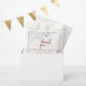 Estas hermosas bolsas de favores son una manera maravillosa de agradecer a sus invitados bodas. Presentan un diseño sencillo pero elegante con una caligrafía de escritura roja elegante y cuadros de encaje gris plateado en las esquinas. El texto dice: Gracias por Celebrar con nosotros, con espacio para sus nombres y la fecha de boda a continuación. Sencillas, elegantes y elegantes, estas bolsas favoritas le darán un toque de clase y elegancia a su celebración.