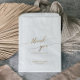 Estas elegantes caligrafías doradas gracias a las bolsas de favores de boda son perfectas para un simple boda. El diseño neutro incluye una minimalista bolsa de favores decorada con una romántica tipografía de Relieve metalizado de imitación de oro. Personalice las bolsas de regalo con un mensaje de agradecimiento, sus nombres y la fecha. Estas bolsas de regalo se pueden utilizar para la recepción de una boda, la ducha de novia o cualquier evento o fiesta. Nota: Este diseño no tiene Relieve metalizado oro real. Es un gráfico de alta calidad hecho para parecer un Relieve metalizado dorado.