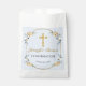 Gracias a sus invitados en la recepción de confirmación de su hija ofreciendo regalos de favor con estas bolsas de bonito Blue & Peach Floral Confirmation Favor Bags. Estas bolsas de color azul claro para la Confirmación de Chicas presentan un suave fondo azul con hermosos ramos florales en melocotón, crema y azul. Un marco dorado rodea el texto con una hermosa cruz de oro en el centro del elegante diseño. Personalice estas bolsas de confirmación de chicas agregando un nombre y la fecha de su evento.