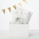envíe a su huésped a casa con una de esas golosinas bodas en esta elegante y moderna bolsa de favores, con elementos botánicos de eucalipto azul polvorido claro, un marco azul polvoriento y un fondo de mármol de imitación de Carrera. Parte de una suite de invitados a la boda. Copyright Elegant Invita, todos los derechos reservados.