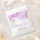 Un hermoso bolso de regalo de despedida de soltera con giro floral morado. Una forma ideal de agradecer a sus invitados por asistir a su función o como decoración de mesa. El color de fondo y el texto se pueden cambiar para adaptarse a sus propias necesidades.