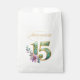 Esta elegante bolsa de favores es perfecta para una celebración de quinceañera en tonos dorados, verde azulados y lavanda. El bonito diseño cuenta con un número de oro ornamentado quince con acentos brillantes, lo que da un toque de diseño a un evento de diseño. Esta bolsa es la manera perfecta de distribuir favores a tu invitado en este día especial. Busque ID1029 para ver otras piezas en esta hermosa suite.