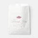 Moderna fiesta de graduación favorece las bolsas con un polvoriento tapón de graduación rosa en la parte superior con "Gracias" mostrado en un elegante guión de caligrafía. Personaliza las notas de agradecimiento a tu graduación con el nombre del graduado, el año de graduación y un mensaje personalizado.