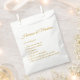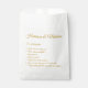 Elegante guión personalizado personalizado falso de oro oscuro Couple Fun Facts fiesta de moda bolsos de favores. Texto de caligrafía dorada de Faux oscuro y fondo blanco.